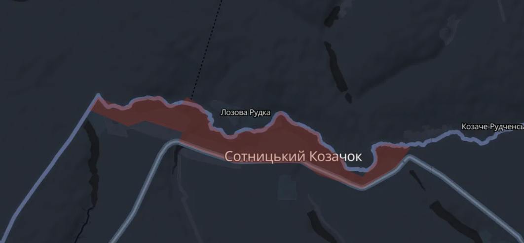 Паблик Deep State сообщил о продвижении РФ в приграничном селе Сотницкий Казачок в Харьковской области.