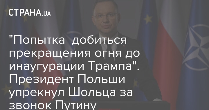 "Я считаю, что звонок Шольца Путину – это была попытка добиться прекращения огня в Украине до того, как Дональд Трамп вступит в должность", – сказал Дуда.