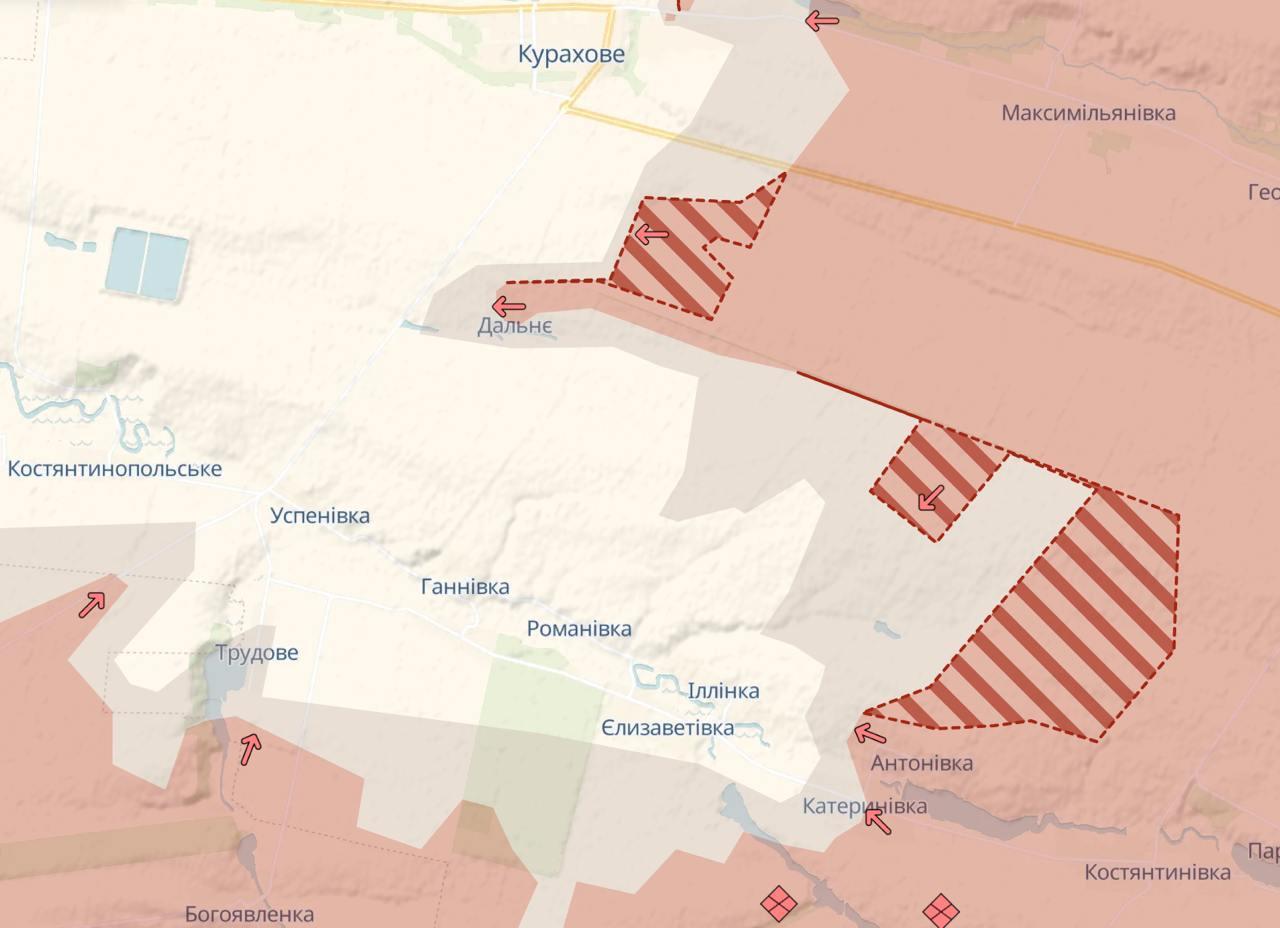 Кроме того, согласно карте DS, войска РФ продвинулись в направлении Курахово с юга, до городских окраин там осталось порядка полутора километров.
