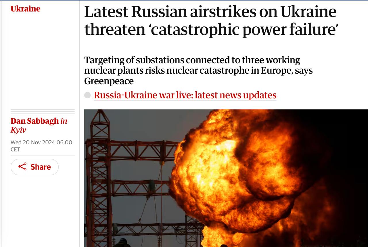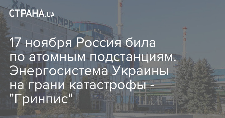 17 ноября Россия била по атомным подстанциям. Энергосистема Украины на грани катастрофы - "Гринпис"
