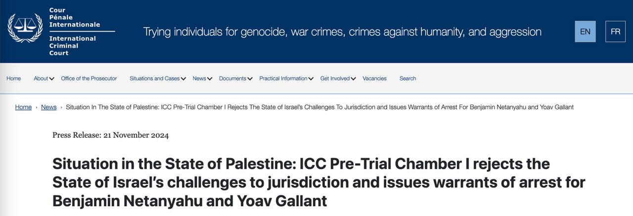 Международный уголовный суд (МУС) выдал ордер на арест премьер-министра Израиля Биньямина Нетаньяху и бывшего министра обороны Йоава Галанта за "преступления против человечности и военные преступления".