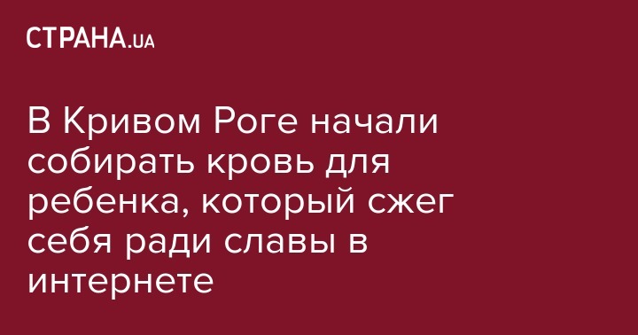 В Кривом Роге организовали сбор крови для 11-летнего ребенка, который облился горючим веществом и поджег себя ради популярности в интернете. Об этом в эфире 112 Украина сообщила спикер ГСЧС в Днепропетровской области Дарья Гречищева.