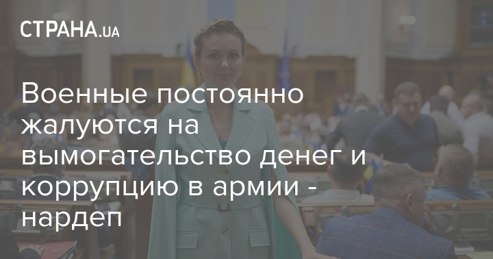 Глава временной следственной комиссии Верховной Рады по вопросам нарушения законодательства в Минобороны и ВСУ Анна Скороход заявила, что военные постоянно жалуются на вымогательство денег и коррупцию в армии.