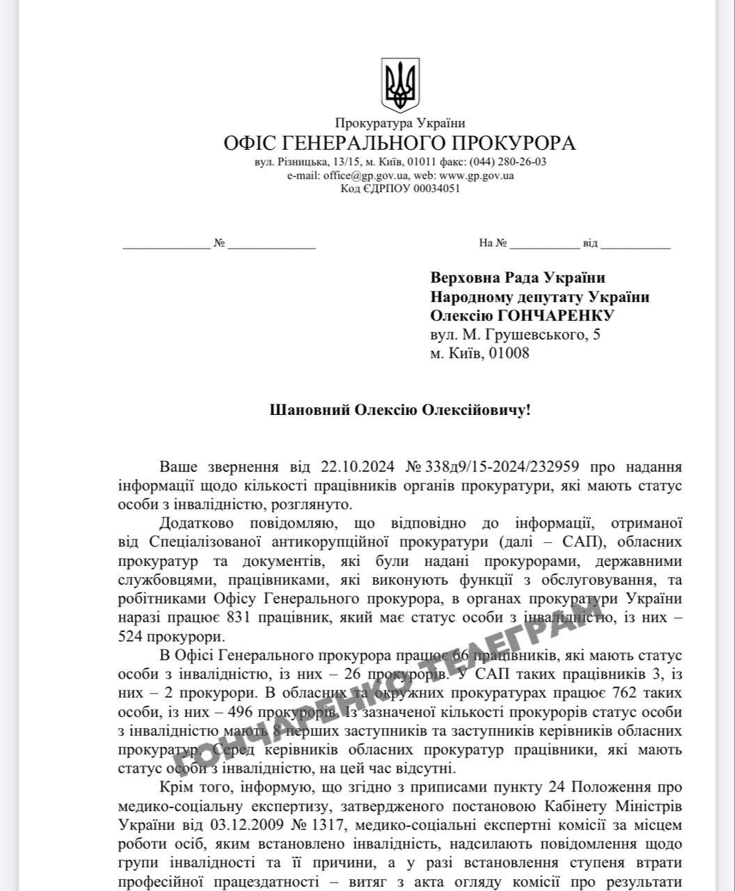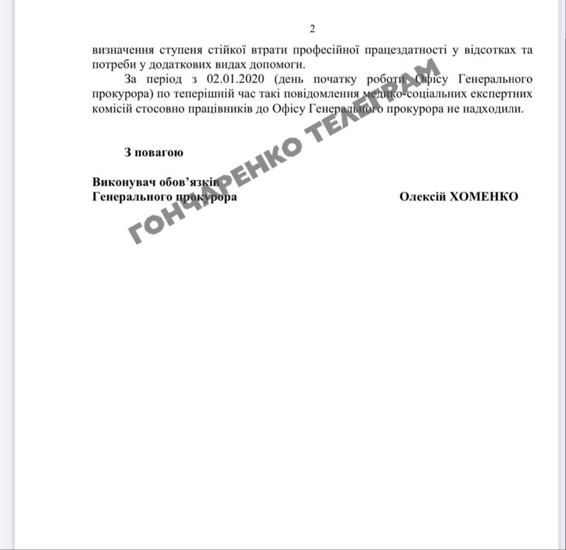 Об этом сообщил Офис генерального прокурора в ответе на запрос народного депутата от партии "Евросолидарность" Алексея Гончаренко.