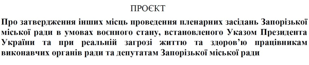 Соответствующий проект был опубликован местными властями на сайте Запорожской городской администрации.
