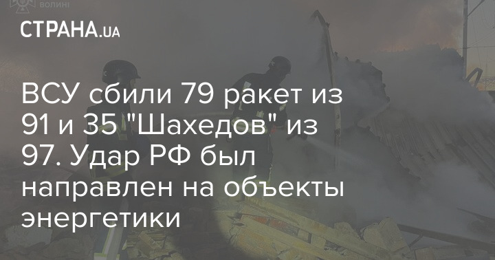 ВСУ сбили 79 ракет из 91 и 35 "Шахедов" из 97. Удар РФ был направлен на объекты энергетики