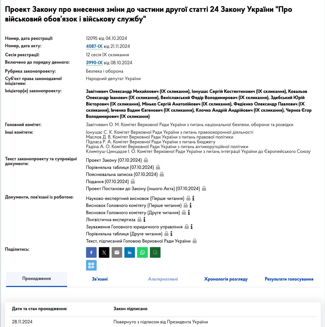 Согласно карточке документа на сайте Верховной Рады, он был подписан вчера.