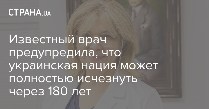 "Если всё будет двигаться по такой модели, то, не считая цифры потерь на войне и эмиграции, украинская нация обнулится через 180 лет. Останется 0 украинцев", - сказала она.