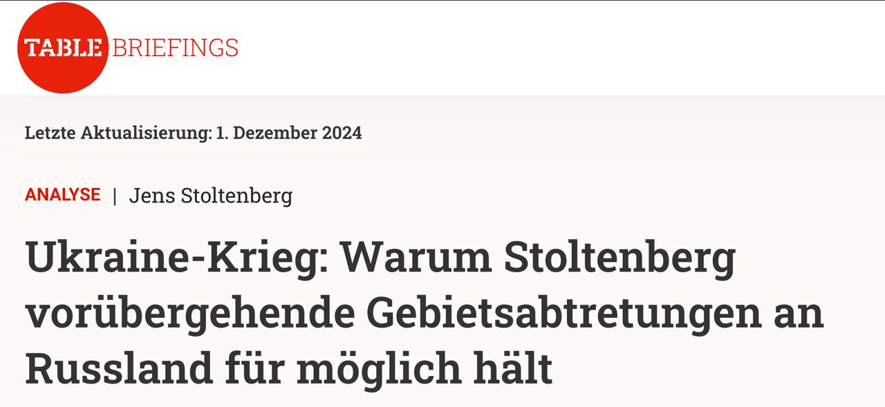 "Если линия прекращения огня означает, что Россия продолжает контролировать все оккупированные территории, это не означает, что Украина должна навсегда отказаться от этих территорий", - заявил Столтенберг в интервью изданию Table.