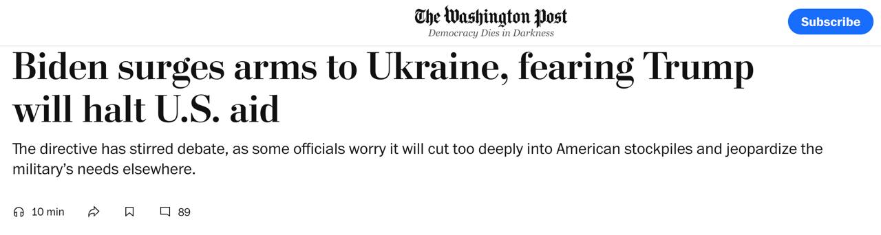Также он сказал, что администрация Байдена постарается "в последнюю минуту" предоставить Украине дополнительное оружие на миллиарды долларов, хотя это "вызывает опасения относительно потенциального воздействия на американские арсеналы и истощение ресурсов в других горячих точках".