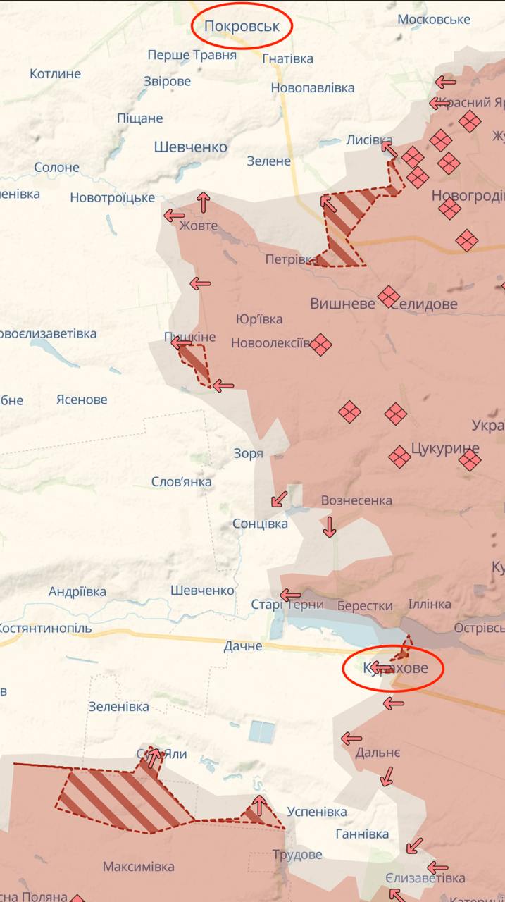 На Покровск россияне продвинулись с юго-востока по главной трассе.