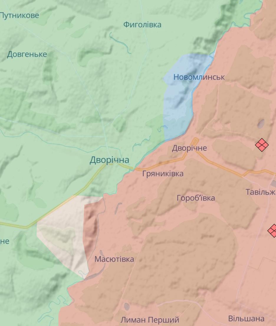 А в Харьковской области отбитые накануне позиции на правом берегу реки Оскол уже указаны под контролем ВСУ, то есть там удалось закрепиться.