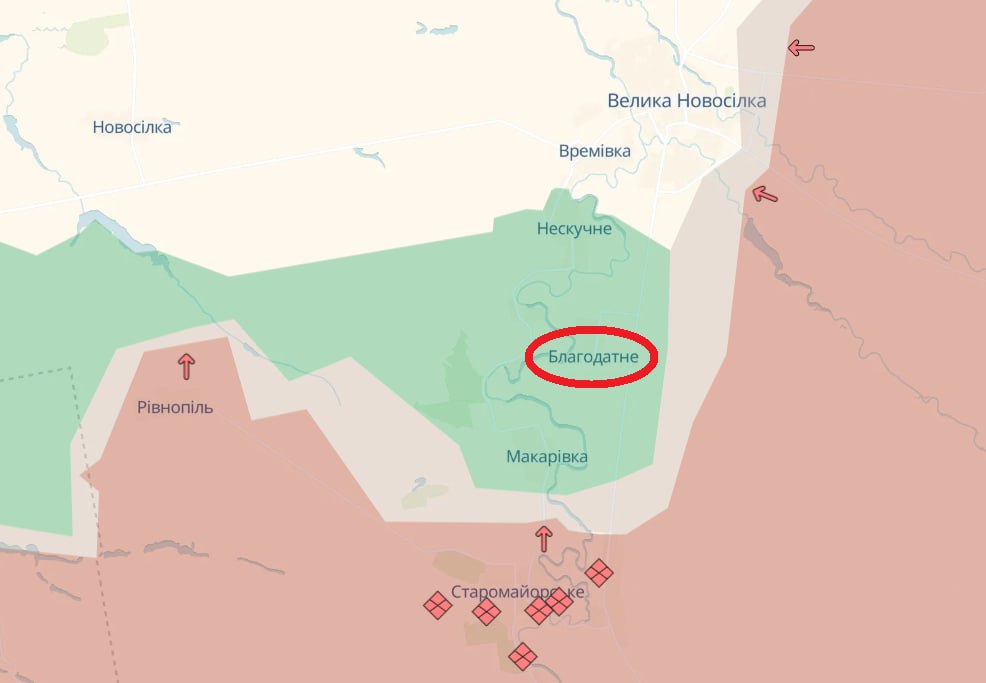 На карте Deep State Благодатное пока в зоне украинского контроля.