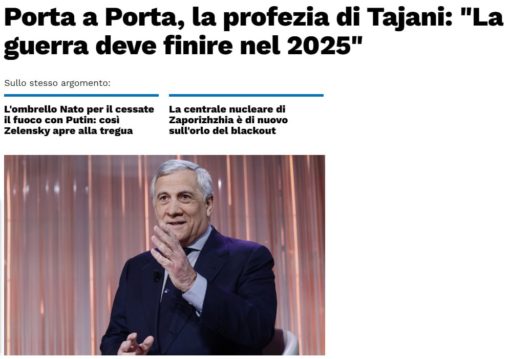 «Если русские по-прежнему продвигаются, Зеленскому придется пойти на уступки, если он не хочет, чтобы ситуация стала еще хуже», – сказал министр в телеинтервью, которое выйдет на канале RAI-1.
