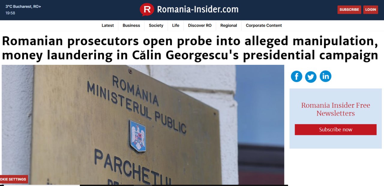 Румынская прокуратура начала расследовать предполагаемые манипуляции и отмывание денег в ходе предвыборной кампании ультраправого кандидата Калина Джорджеску, который победил в первом туре выборов президента.