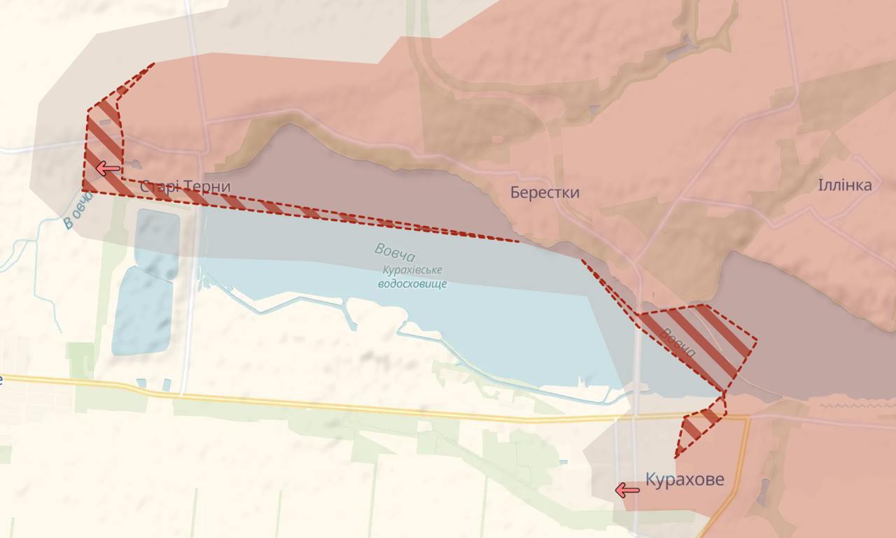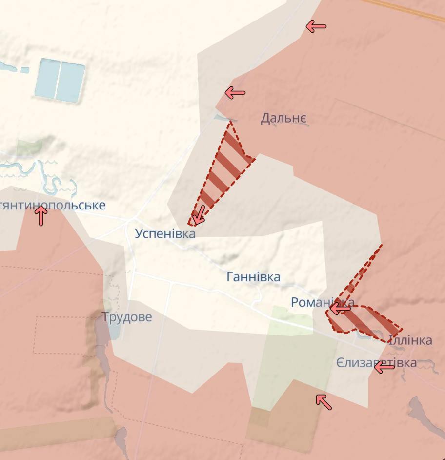 09:32 Карта Deep State подтверждает потерю Старых Тернов под Курахово. А также резкое продвижение россиян в "кармане" южнее - на Успеновку.