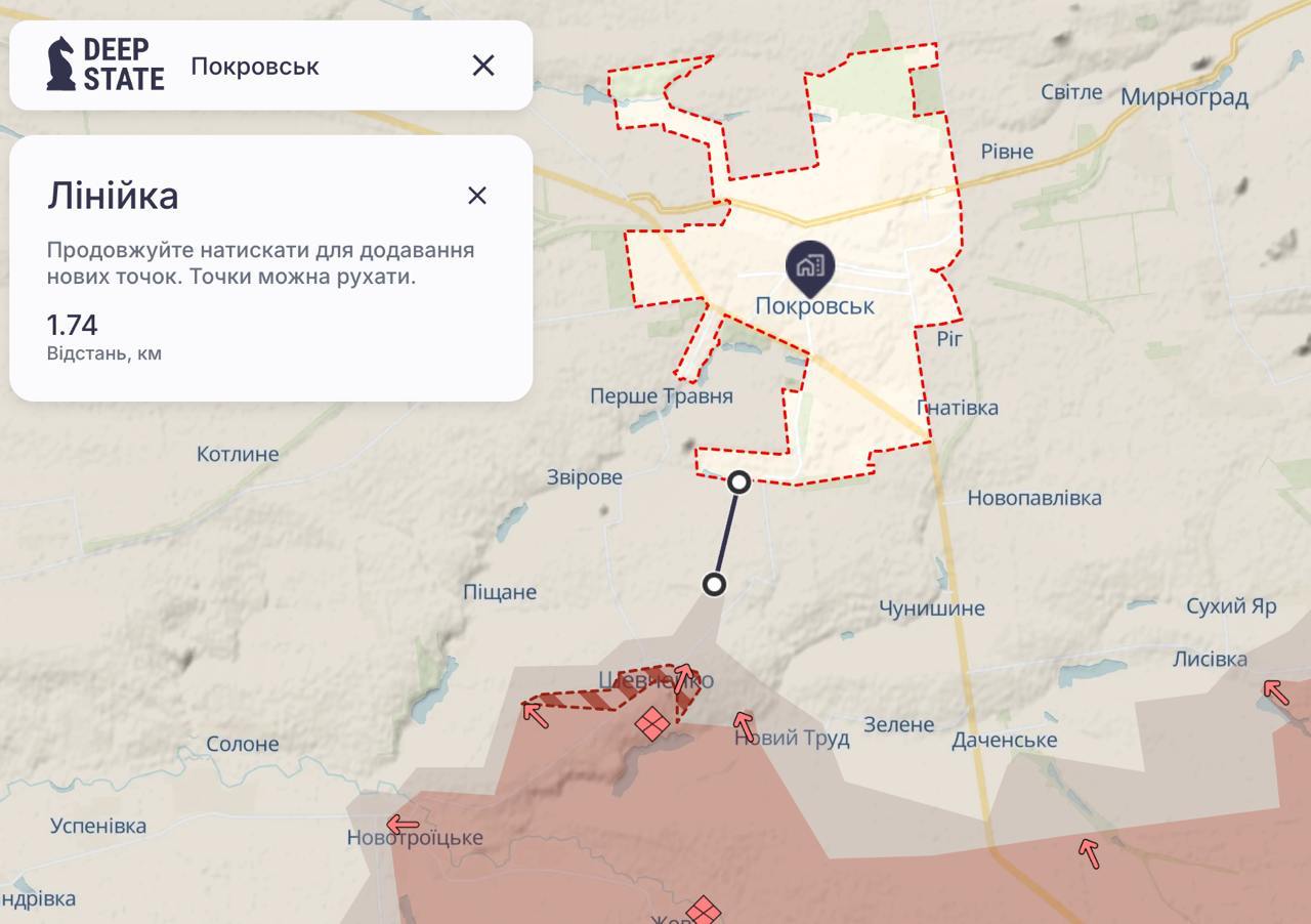 На карте Deep State указано, что от линии фронта до южных улиц города осталось меньше 2 км.