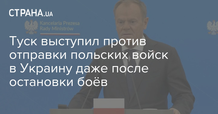 Премьер-министр Польши Дональд Туск заявил президенту Франции Эмманюэлю Макрону, который прибыл с визитом в Варшаву, что польские войска не войдут в Украину даже после прекращения огня.