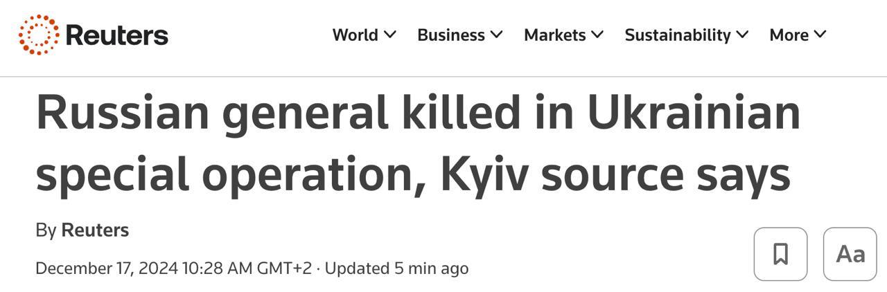 Между тем агентство Reuters со ссылкой на источники в СБУ пишет, что Кириллова ликвидировала украинская спецслужба.