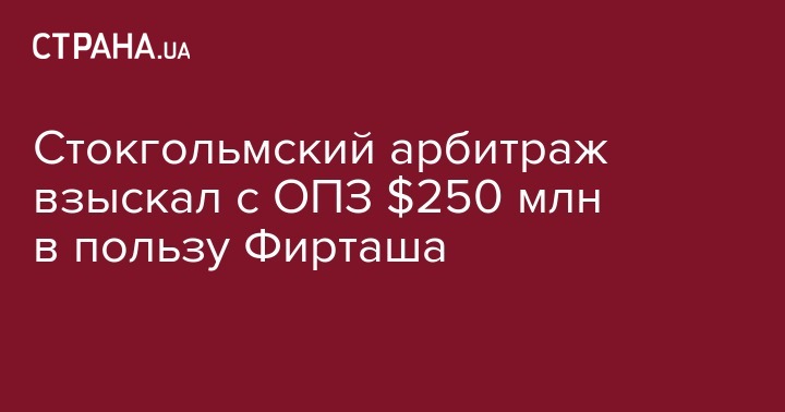 Стокгольмский арбитраж удовлетворил иск о взыскании с Одесского припортового завода (ОПЗ) более $250 млн в пользу принадлежащей Дмитрию Фирташу компании "Ostchem". Об этом сообщает "Экономическая правда" со ссылкой на собственный источник.