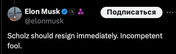 "Шольц должен немедленно уйти в отставку. Некомпетентный дурак", - оставил комментарий миллиардер.