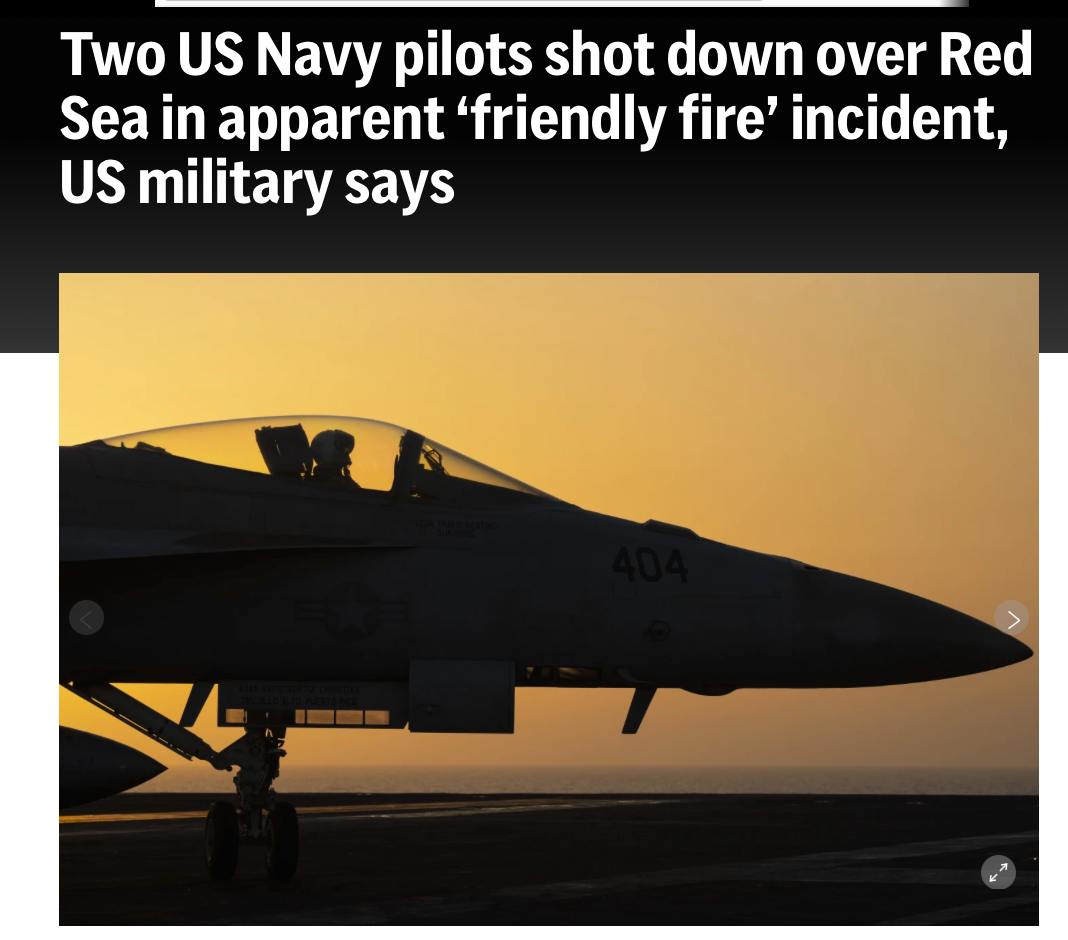 Заявляется, что самолет был сбит "дружественным огнем". Он взлетел с авианосца и наносил удары по Йемену. По нему нанес удар ракетный крейсер Gettysburg.