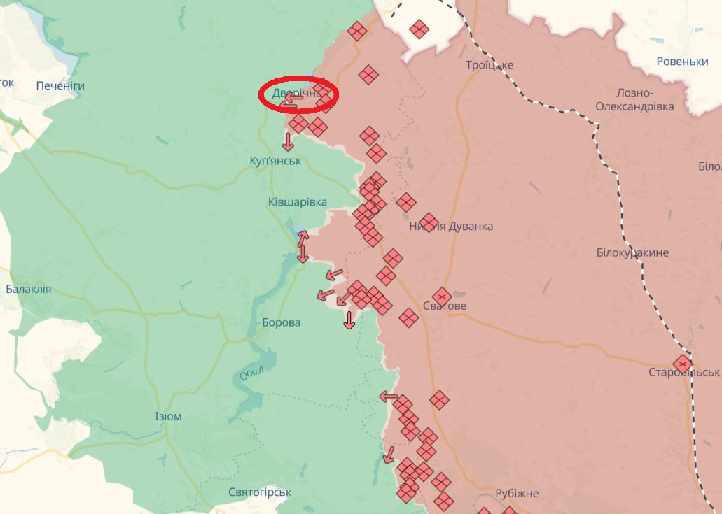 Ранее военные обозреватели сообщали, что войска РФ закрепляются на плацдарме на западном берегу реки Оскол и занимают посёлок Двуречная в Купянском районе Харьковской области.