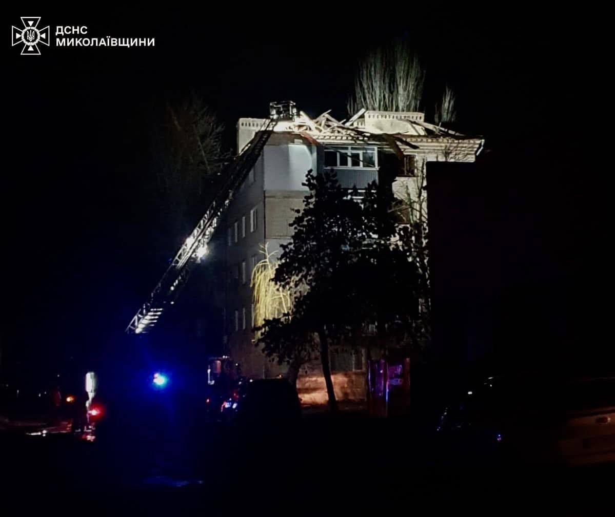 Ночью в Николаеве в Ингулецком районе беспилотник попал по территории предприятия и по крыше многоэтажки. Пожары ликвидированы, пострадавших нет.