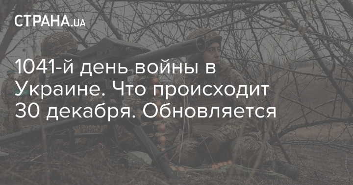В понедельник, 30 декабря, в Украине идет 1041-й день войны с Россией.