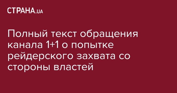 Полный текст обращения канала 1+1 о попытке рейдерского захвата со стороны властей