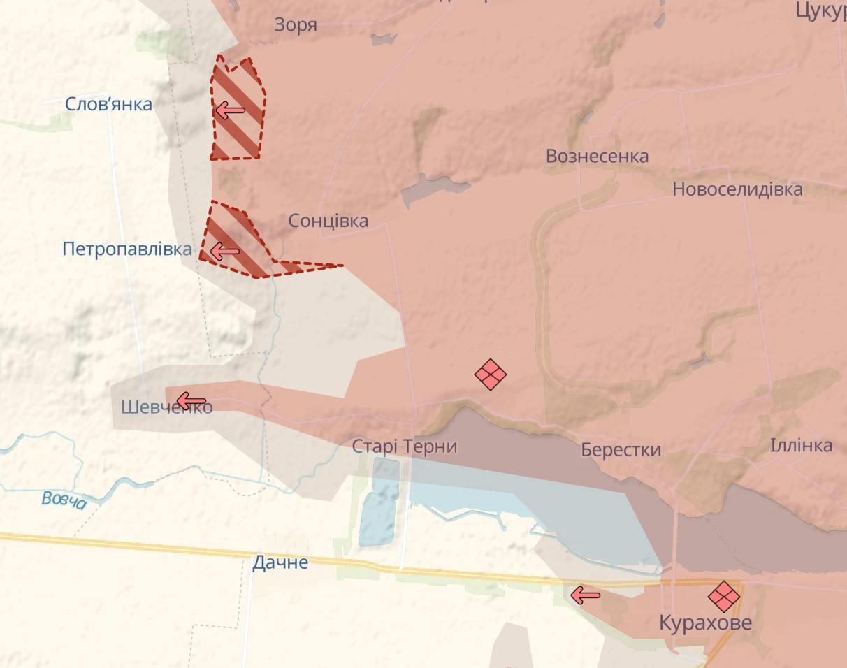 14.28 Армия РФ продвинулась под Курахово и Покровском, свидетельствует карта Deep State.