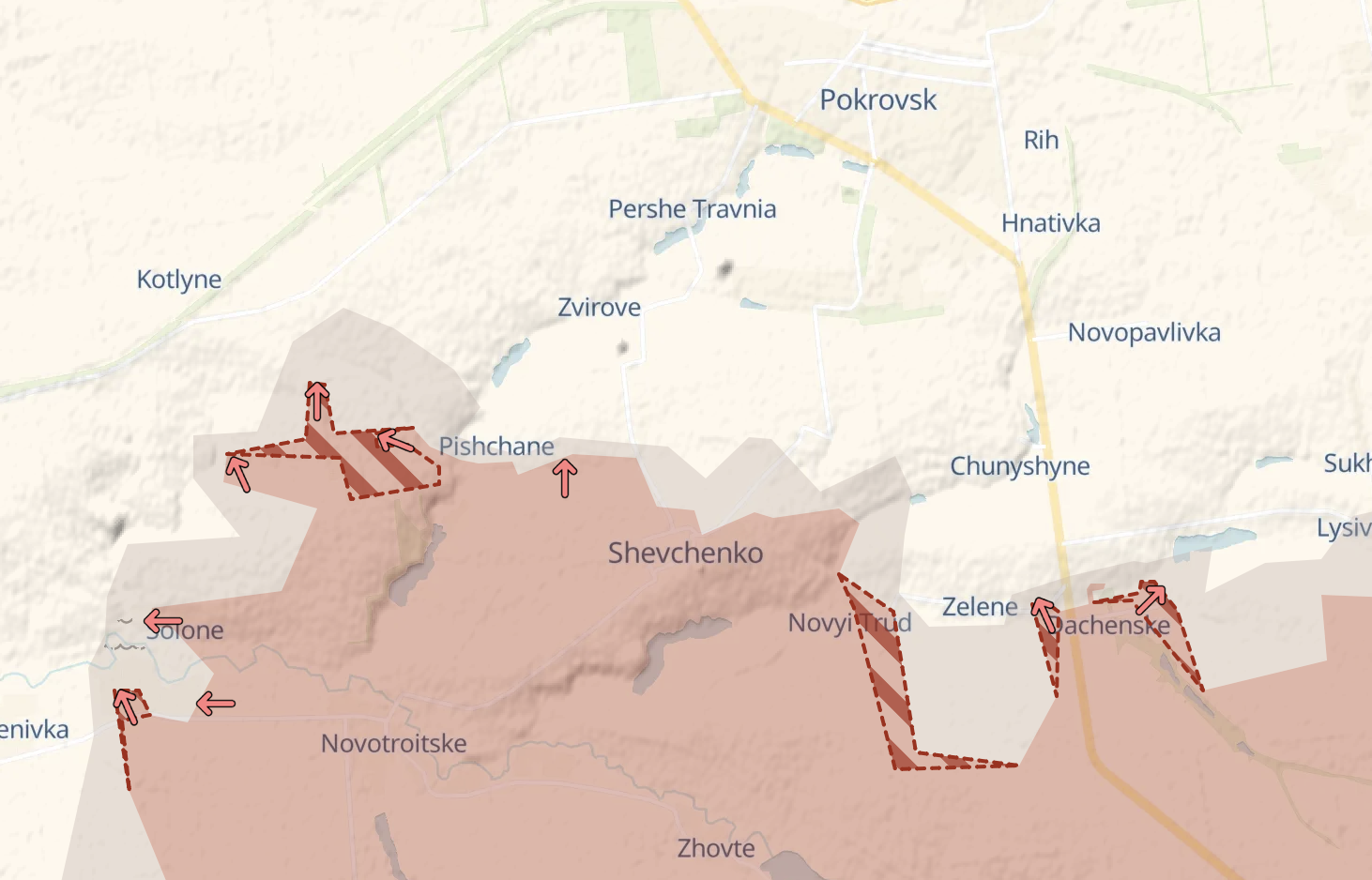 Южнее Покровска российские войска подошли ближе к железнодорожной станции Чунишино. А к юго-западу начинают бои за Зверовое.