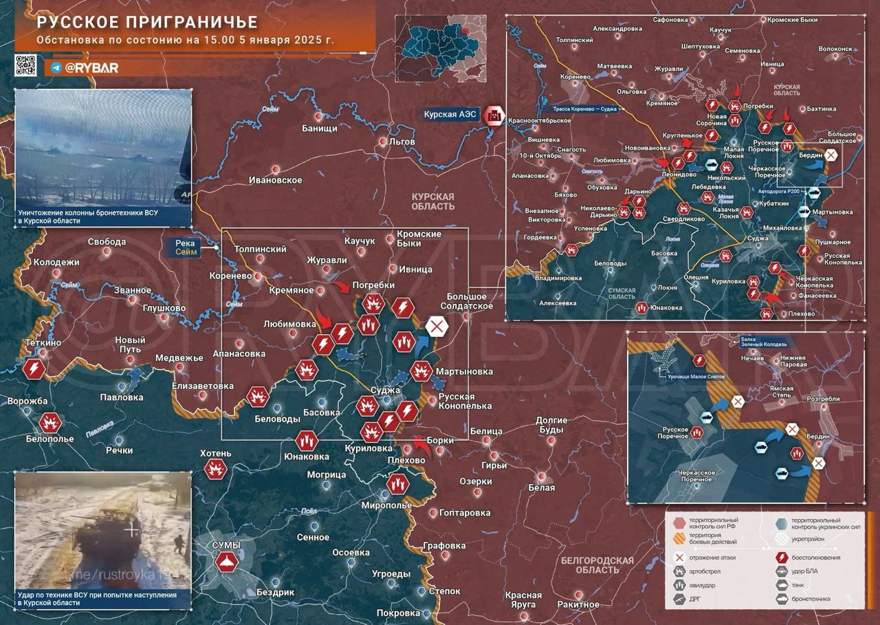 Что касается украинских атак, то по ним поступают также разрозненные сведения. Российские паблики пишут, что бои по-прежнему идут на границе между районами Суджи и Большого Солдатского по главной трассе на Курск.