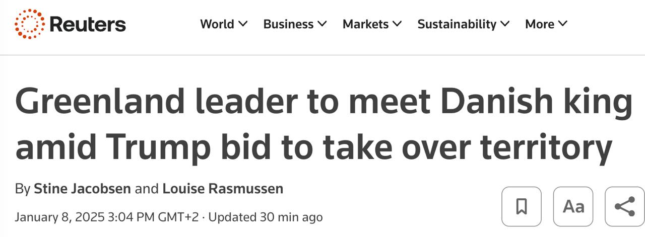 Между тем премьер-министр Гренландии Муте Эгеде сегодня был вызван в Копенгаген на встречу с датским королем, тоже сообщает Reuters. Подробности встречи пока неизвестны.