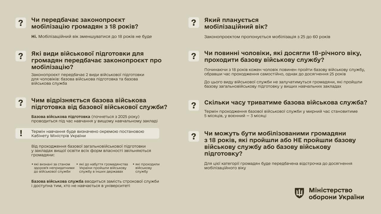 Заявлено, что парни младше 25 лет после прохождения подготовки или службы подлежать мобилизации не будут.