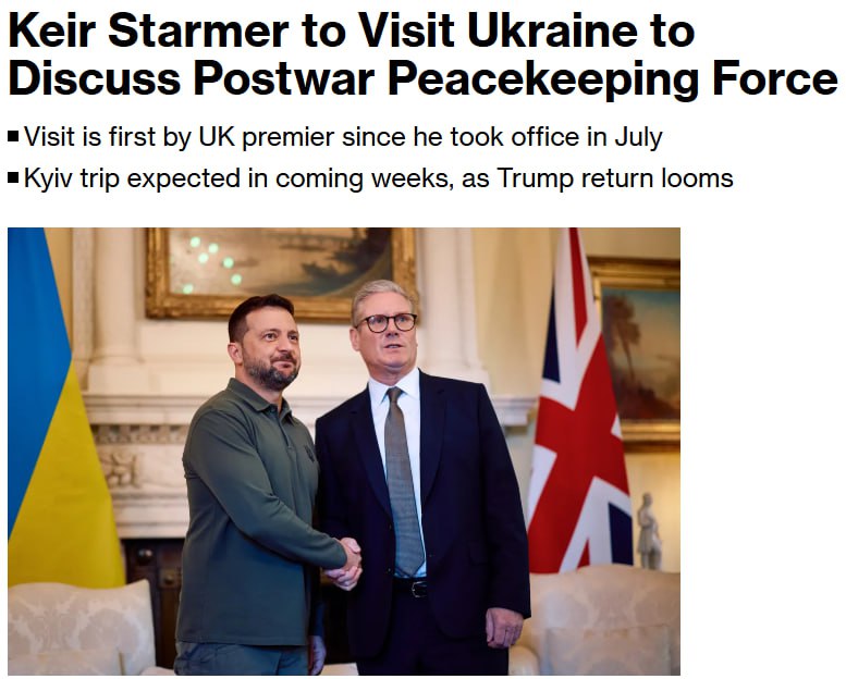 По данным агентства, Стармер планирует посетить Киев в связи с тем, что "Европа усиливает подготовку к возвращению новоизбранного президента США Дональда Трампа в Белый дом".