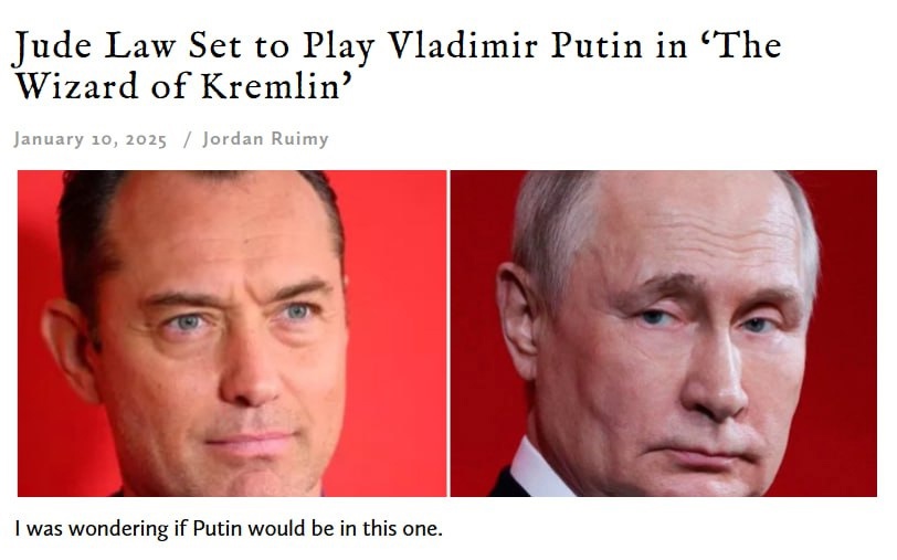 Британский актёр Джуд Лоу сыграет роль Путина в фильме Кремлёвский волшебник