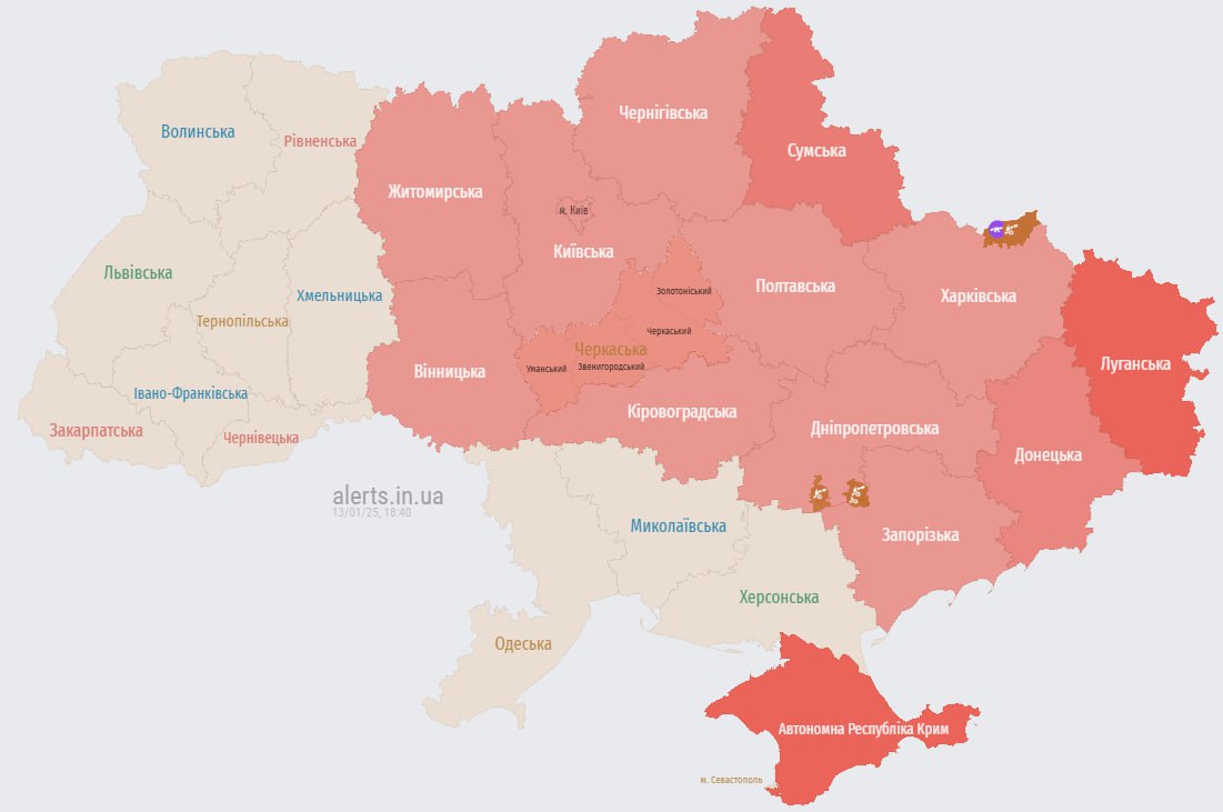20.13 Отбой тревоги в Киеве и большинстве областей.