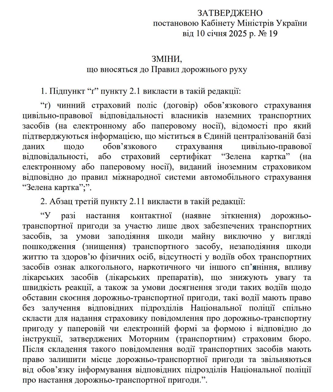Также в новом постановлении сказано, что после составления уведомления водители могут покинуть место ДТП и не обязаны информировать о происшествии Национальную полицию. Ранее по правилам ПДД водители могли вместо вызова полиции обратиться на ближайший пост или в другой орган полиции и оформить соответствующие документы там.