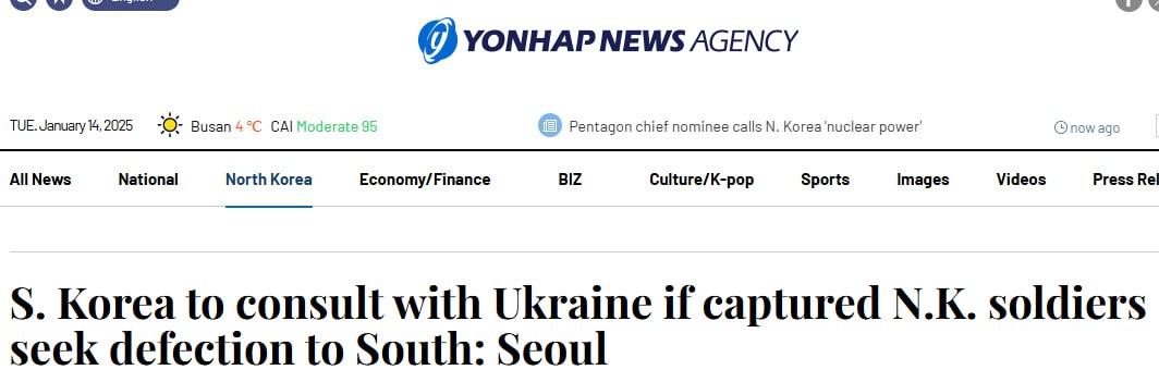 Сеул обсудит с Киевом передачу пленных солдат из КНДР, если они попросят о бегстве в Южную Корею