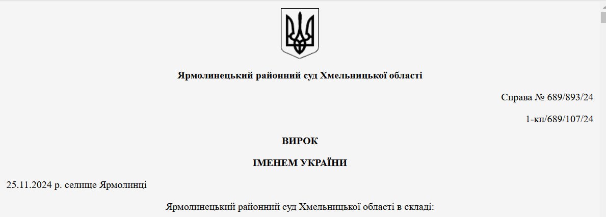 Об этом сообщается в решении Ярмолинецкого суда Хмельницкой области.