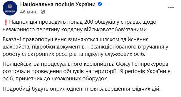 Напомним, на выходных были проведены сразу 600 обысков, выявлены более 60 подозреваемых. Среди обнаруженных схем выявили пересечение границы вне установленных пунктов пропуска, использование поддельных медицинских документов, фиктивные записи в информационной системе "Шлях" и многие другие.
