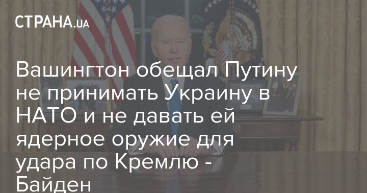 Вашингтон обещал Путину не принимать Украину в НАТО и не давать ей ядерное оружие для удара по Кремлю - Байден