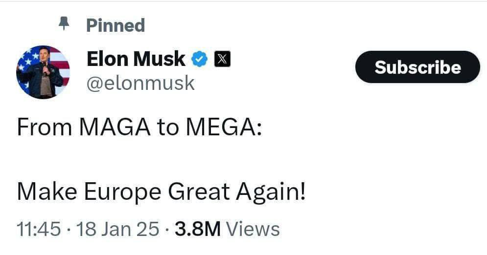 "От MAGA к MEGA: Make Europe Great Again!" – написал Маск.