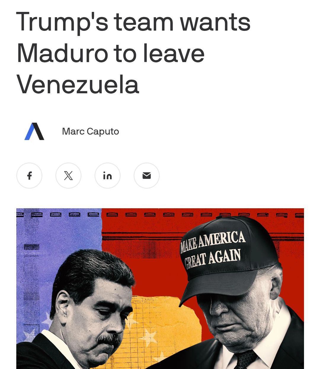 "Мы были бы нисколько не против того, чтобы Мадуро (президент Венесуэлы Николас Мадуро - Ред.) соседствовал с Асадом в Москве", - заявил Axios советник Трампа, участвующий в обсуждениях внешней политики.