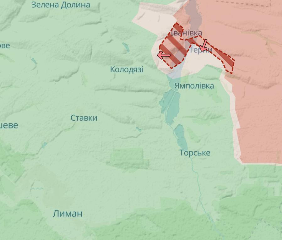 Армия РФ расширяет свои плацдармы на правом берегу реки Жеребец в Ивановке Донецкой области и на правом берегу реки Оскол в Двуречной Харьковской области. Такие изменения отражены на карте Deep State. Также россияне продвинулись в районе Тернов, на левом берегу Жеребца (рядом с Ивановкой на Лиманском направлении).