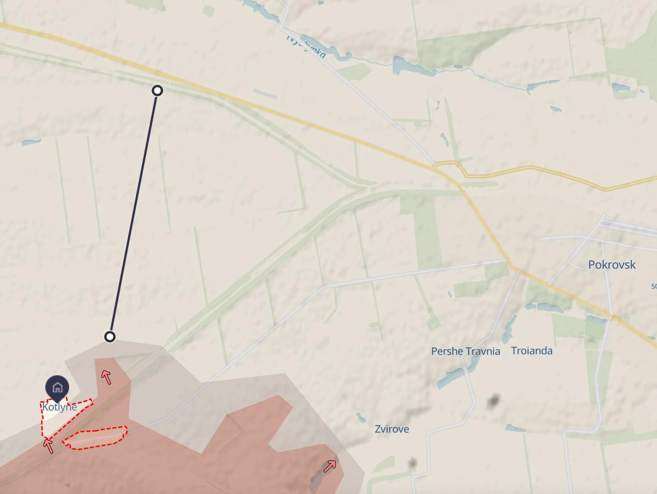 Это село важно тем, что на северо-запад уже нет населенных пунктов до самой трассы Покровск - Павлоград. От Котлино до нее остается чуть более четырех километров. По этой трассе снабжается Покровск, и россияне, как считают военные эксперты, попытаются ее перерезать. При этом украинские военные говорят, что уже сейчас трассой в полной мере нельзя пользоваться, так как она находится под огневым контролем россиян.