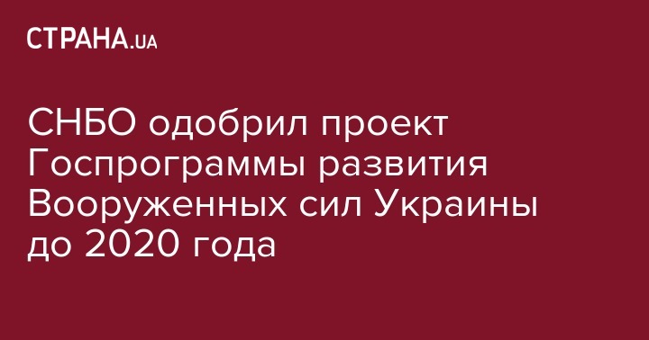"Совет национальной безопасности и обороны Украины поддержал разработанный Министерством обороны Украины проект Государственной программы развития Вооруженных Сил Украины на период до 2020 года и изменения в военно-административное деление территории Украины", – указано в сообщении.