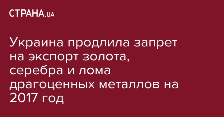 Украина продлила фактический запрет на экспорт золота и серебра на 2017 год. Сохранены нулевые квоты на экспорт золота, серебра, их отходов и лома драгоценных металлов.