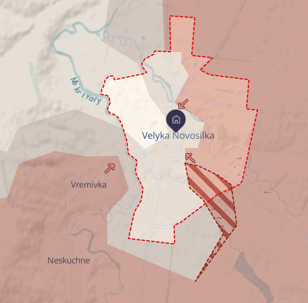 Великая Новоселка почти вся либо в серой зоне, либо под контролем РФ.